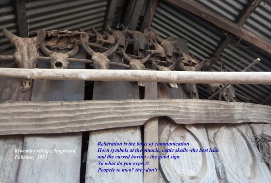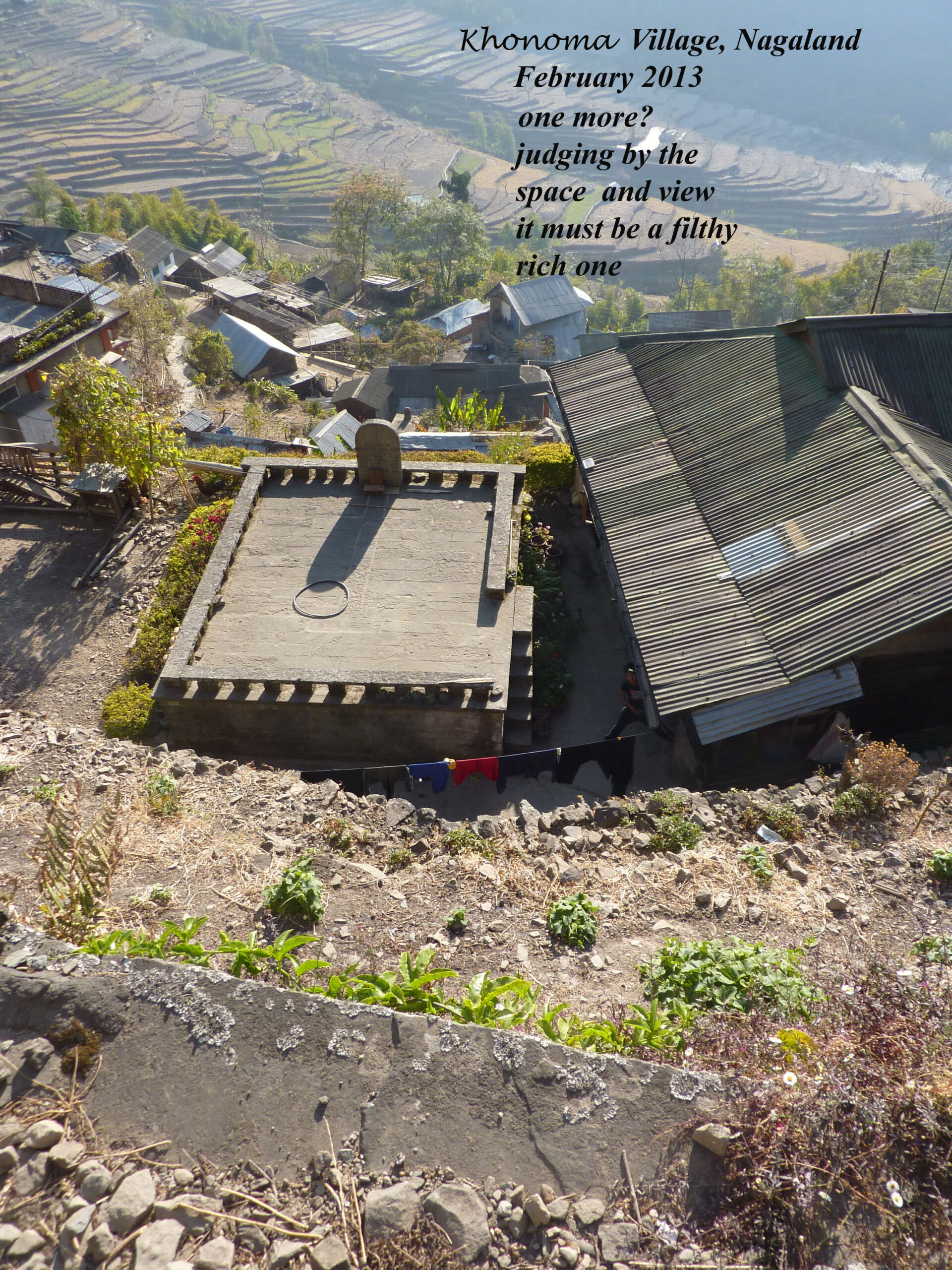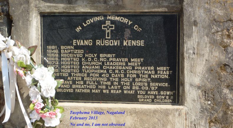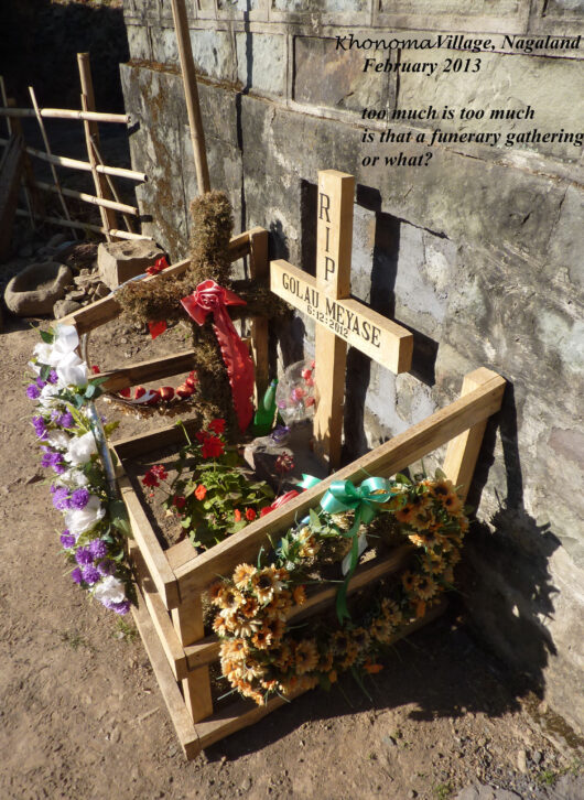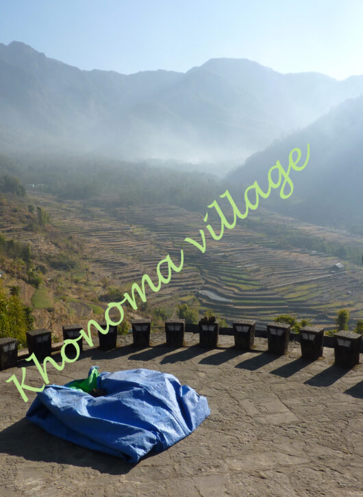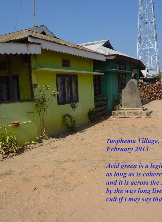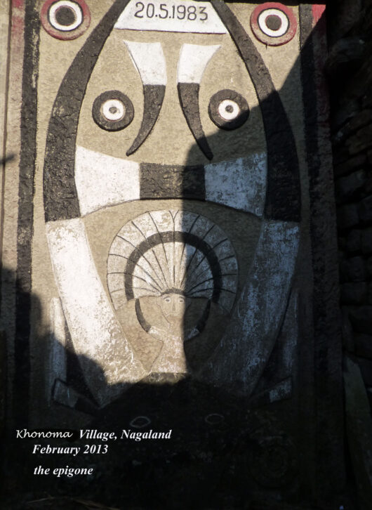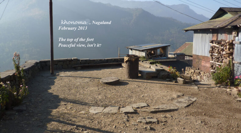 Sortons de Kohima ! Nous partirons au triple galop vers les villages, où les traces de l’ancienne culture (celle des chasseurs-de-têtes) sont plus facilement reconnaissables que dans la capitale. Je ne vais considérer que trois sujets : le fort tribal, la maison des jeunes morung et les cimetières privés, car la rengaine de ce post menace de s’éterniser. Pour les intéressés, les photos se chargeront du reste.