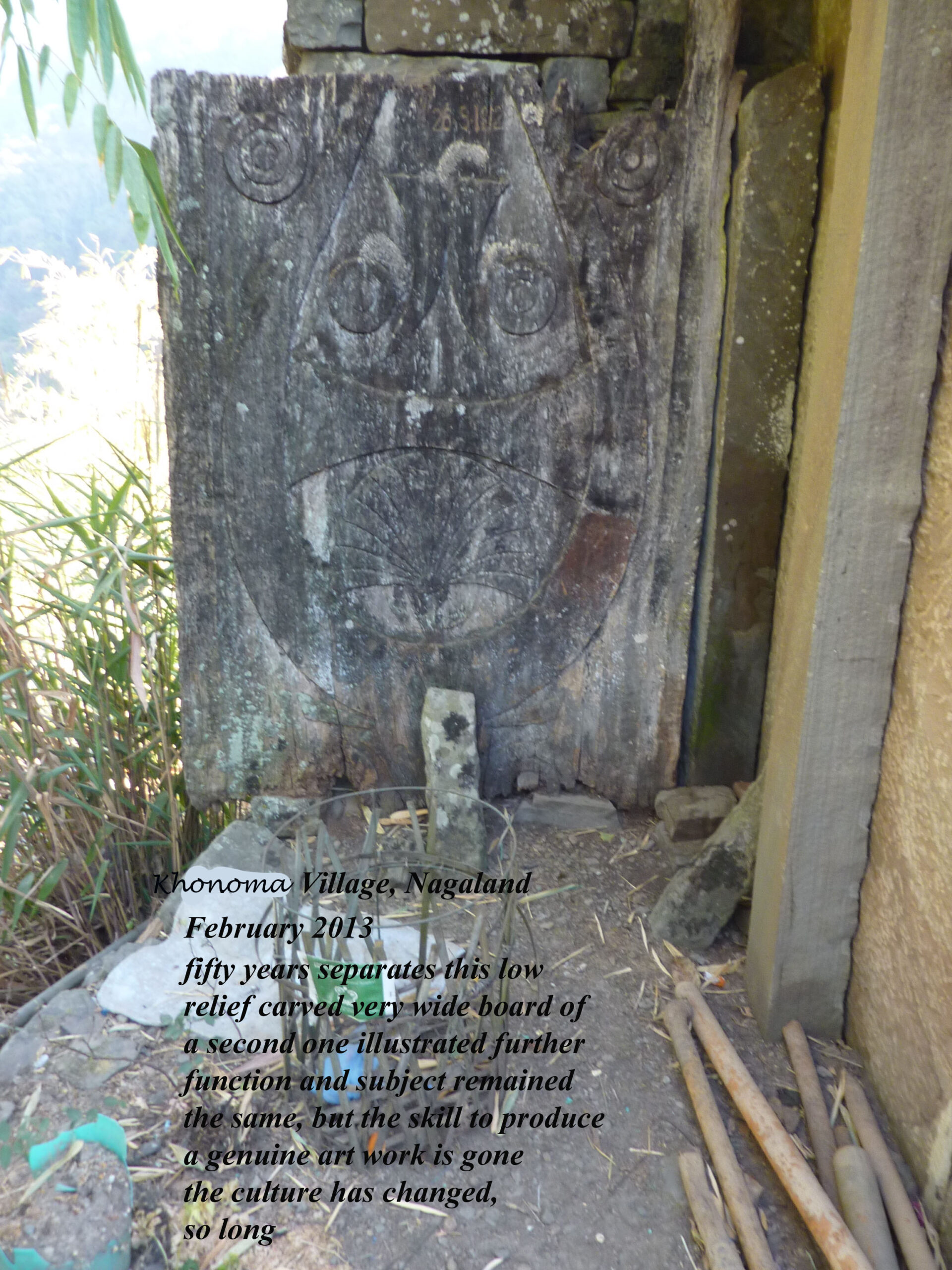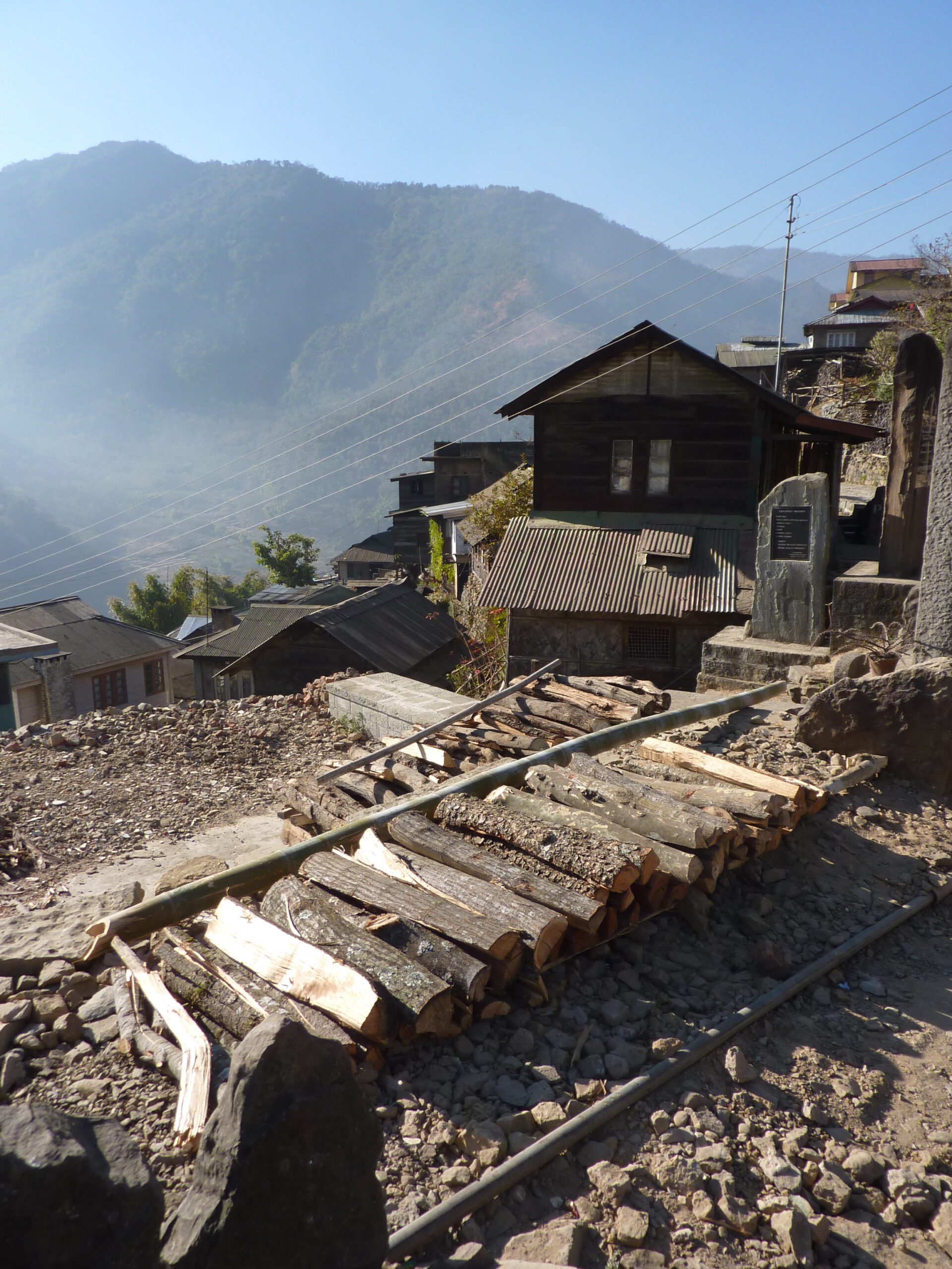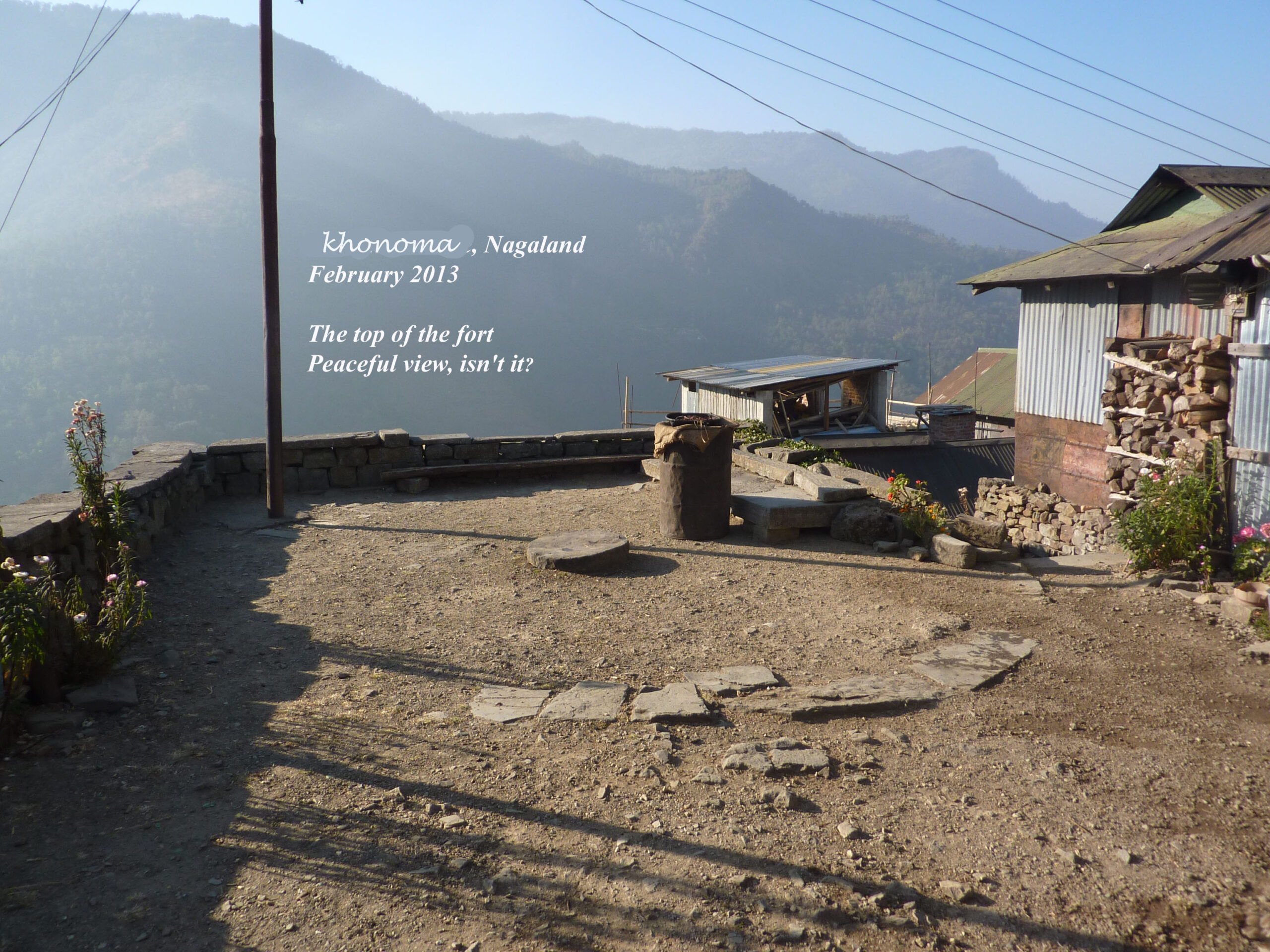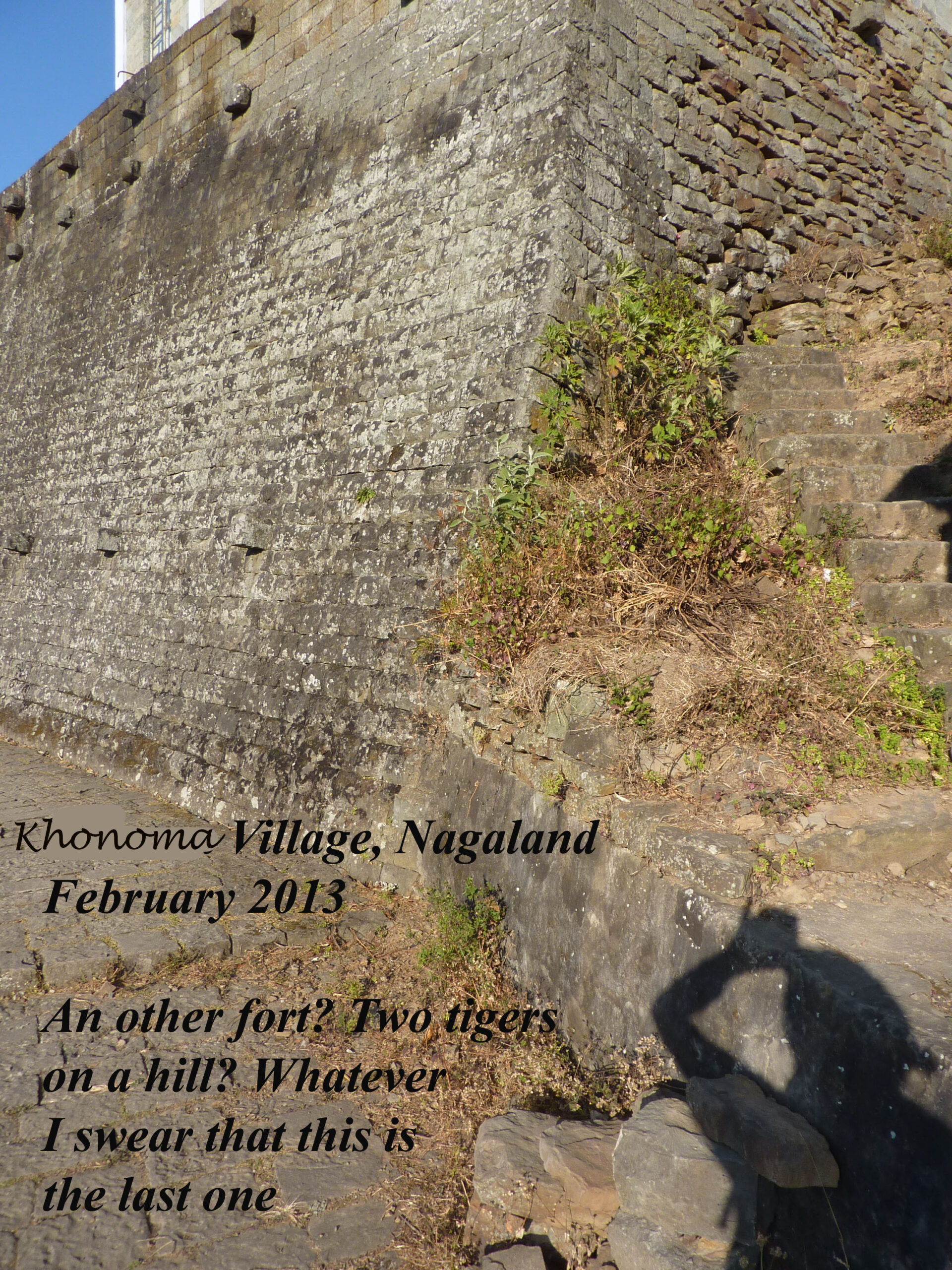 Sortons de Kohima ! Nous partirons au triple galop vers les villages, où les traces de l’ancienne culture (celle des chasseurs-de-têtes) sont plus facilement reconnaissables que dans la capitale. Je ne vais considérer que trois sujets : le fort tribal, la maison des jeunes morung et les cimetières privés, car la rengaine de ce post menace de s’éterniser. Pour les intéressés, les photos se chargeront du reste.