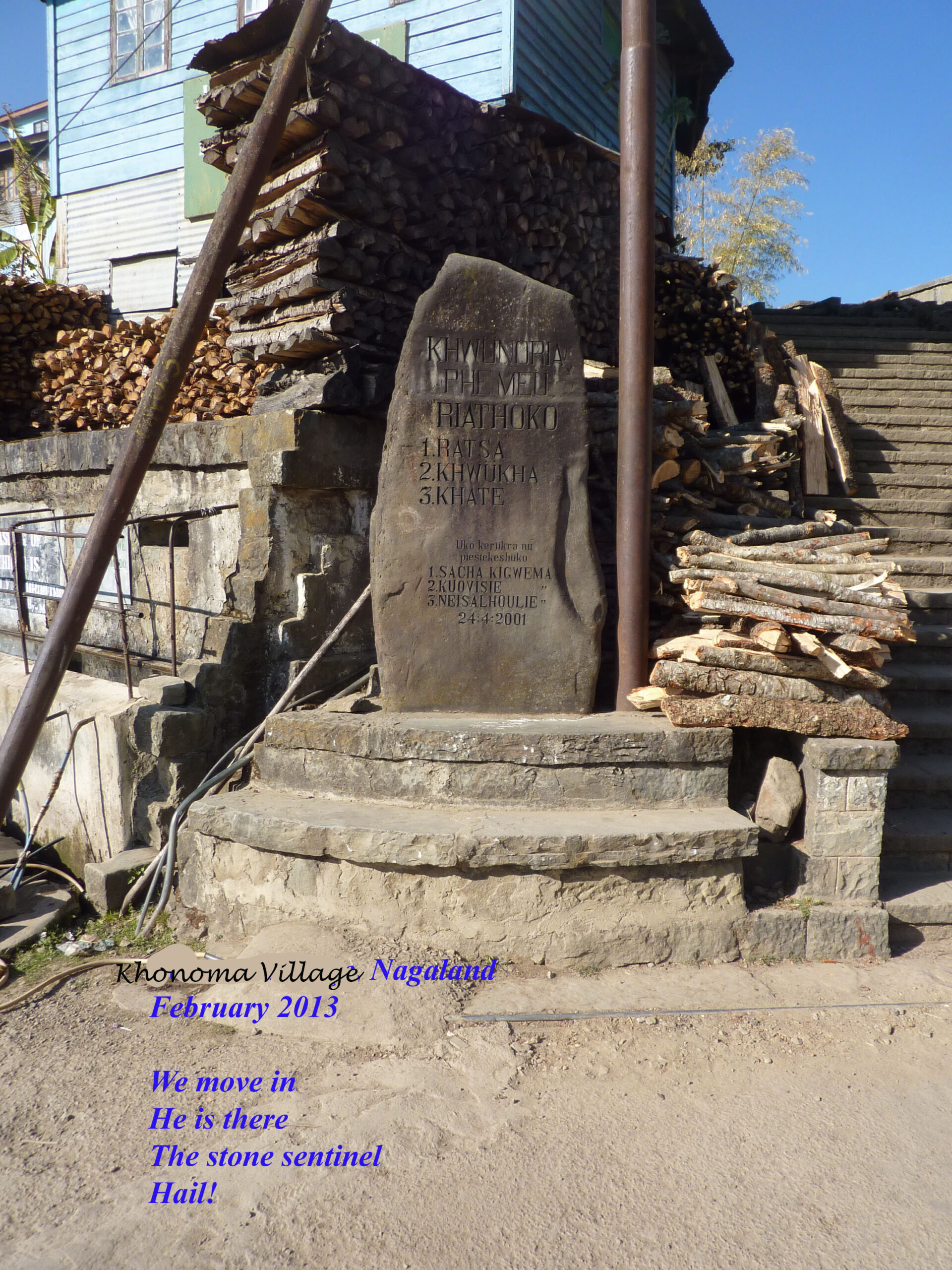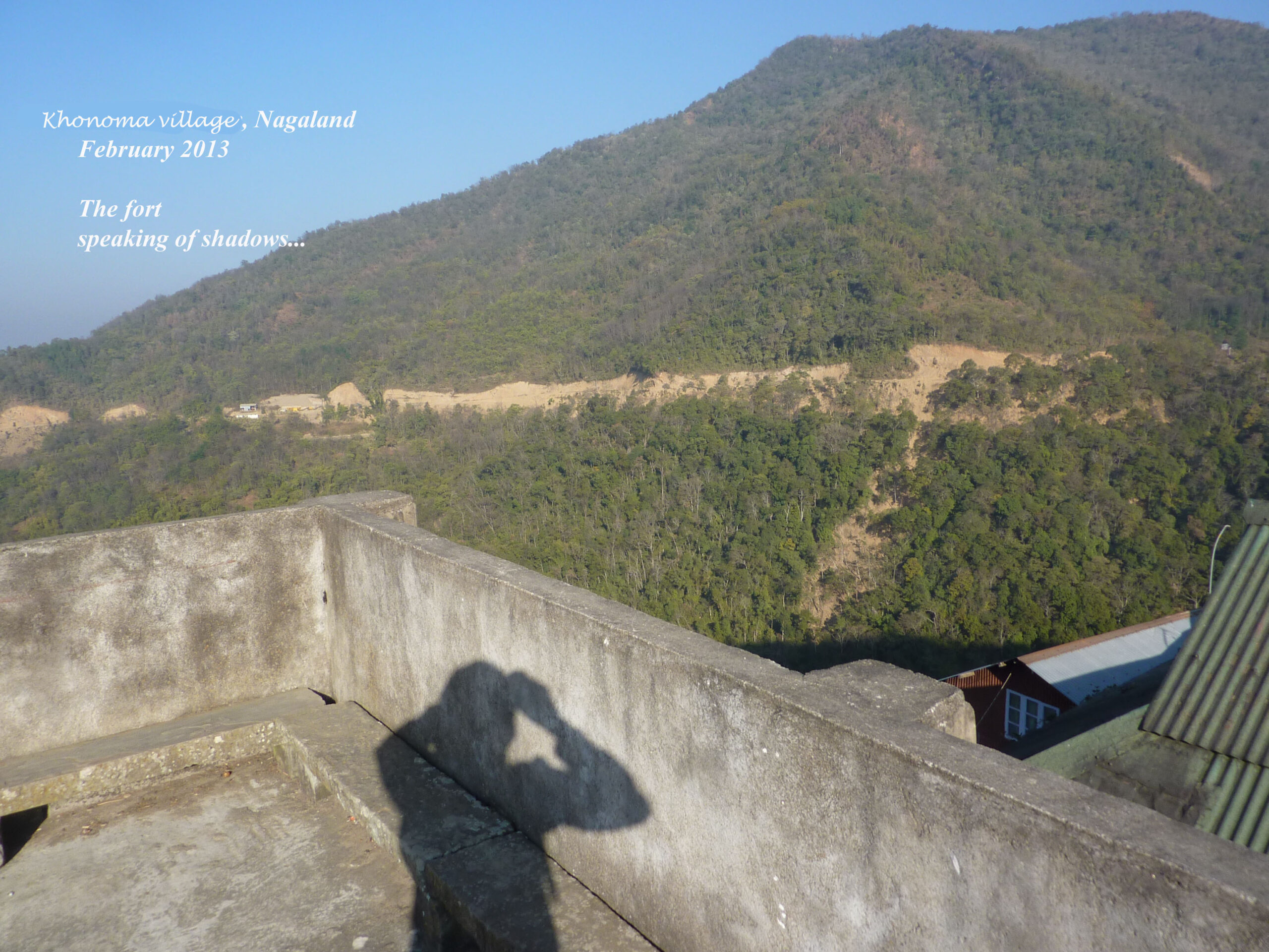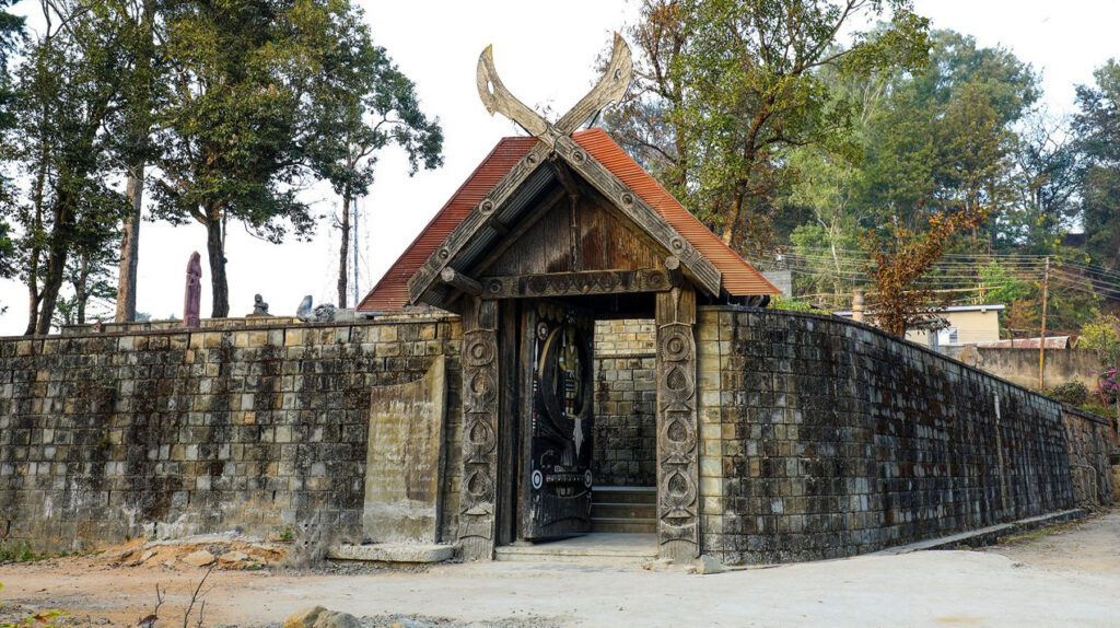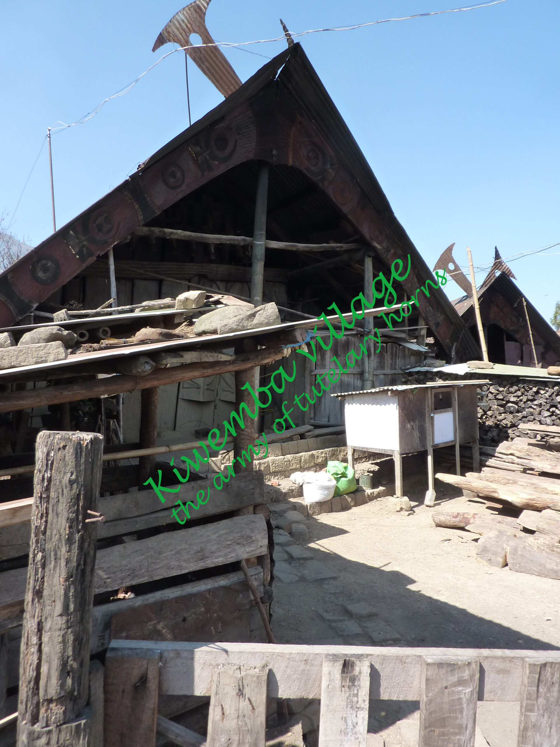 Sortons de Kohima ! Nous partirons au triple galop vers les villages, où les traces de l’ancienne culture (celle des chasseurs-de-têtes) sont plus facilement reconnaissables que dans la capitale. Je ne vais considérer que trois sujets : le fort tribal, la maison des jeunes morung et les cimetières privés, car la rengaine de ce post menace de s’éterniser. Pour les intéressés, les photos se chargeront du reste.