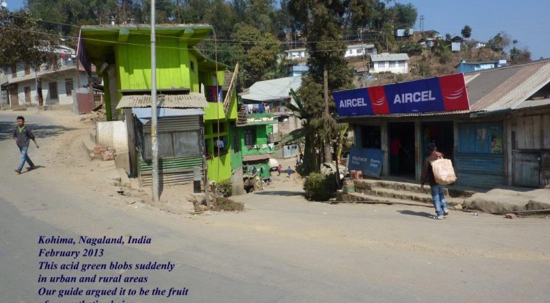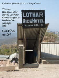 une entreprise suicidaire, l’artisanat local médiocre, les bananes infectes et les restaurants ignoraient la nécessité d’un troisième mets, surtout de mon bien aimé Gulab Jamun. Ce n’était pas le dernier bistro sur la piste, c’était l’épicentre de nulle part. Jugez par vous-mêmes, écrasée entre le Bengladesh et la Birmanie, rien ne passe si ce n’est la contrebande, coiffée lourdement pas les états plus intégrés, plus “Hindous” d’Assam et Sikkim, etc, le Nagaland avec sa population tribale de race jaune et aux yeux bridés, est à égale distance de l’Inde que de la lune. Alors rien de plus ? Bien sûr que si…Il faut seulement regarder autour de soi et avec attention.