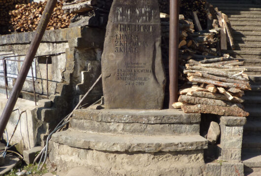 L’entrée en pierres de taille dans cette redoute, suggérant un fort villageois et décorée de symboles animaliers se croisant au pinacle du toit de l’auvent, ainsi que par les masques bovins sculptés sur les jambages, lança un cri d’alarme. Car, ainsi que marqué dans les Écritures, ce n’est pas recommandable qu’un contenant étale les caractéristiques visuelles du contenu. Passons.