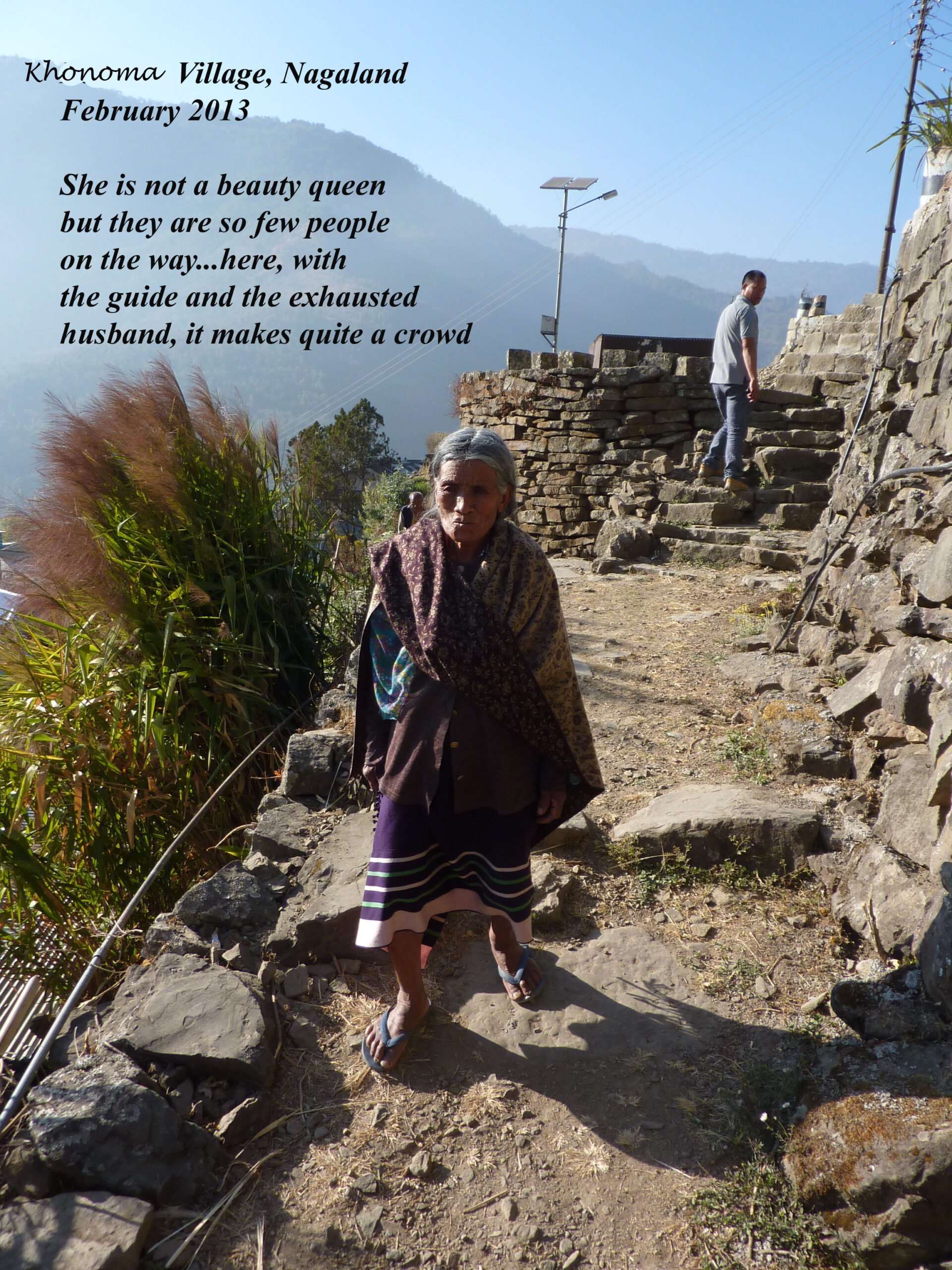 Les choses commencèrent à se gâter dès le départ du voyage au Nagaland.Seule une personne sensiblement irresponsable — je parle ici de moi-même — pouvait faire un tel choix et se laisser choir, les yeux ouverts, dans une impasse sans horizon, quoique haut perchée sur la pente d’une colline monumentale (1500 mètres). L’intention de faire plaisir à L., qui m’avait offerrt de choisir la seconde(la cinquième? j’ai perdu le compte) étape de notre périple, me guida tout droit dans l’erreur. Une preuve de plus, s’il en fallait, que l’enfer est pavé de bonnes intentions.