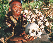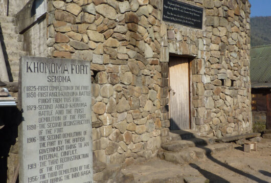 des objets inutiles, ils collectionnaient autant de crânes ennemis que possible. Cette passion culturelle fut le prétexte qu’utilisèrent les Anglais pour les conquérir, au terme d’une guerre rampante de près d’un siècle. Cela ne se fit pas facilement, car les Naga n’avaient aucune envie de se faire « éduquer ». C’est à cette époque qu’ils construisirent des forts — du genre bunker — en pierre dure, gros galets ou pierre taillée, comme le fameux et bien préservé fort de Khonoma.