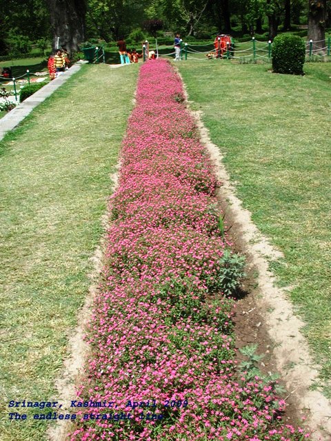 I was about to report on the visit and attempt to capture the aura of a Mughal Garden when I realized the photos didn’t match my notes. Doggedly, I began to sniff around, only to discover that, out of the famous three gardens, we had seen two: Nishat Bagh and Chashme Shahi. Thank God we missed the inspiring Shalimar (what a name—it conquered the world!). Whatever the case may be, I shall restrain myself to a succinct phenomenological or even better, taxonomic depiction of Nishat Bagh, wondering if this task alone is not far beyond my wit and skills.