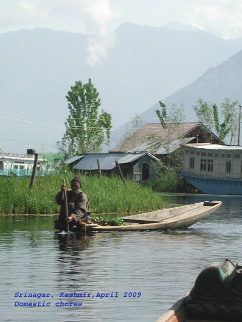Early the next morning, we went ballistic—like an overzealous city officer paid by the number of tickets he handed out. I was dashing out alone, Lothar went into mountains to bother the tribal people. After a hefty breakfast I ‘sailed’ on a shikara skiff to visit (hope breeds fools ) some workshops. I like to see craftsmen in action and inhale the pungent scent of freshly worked up materials and of the craft shop itself.The tourist job is not a joke, especially when one wants to make discoveries. I have a gut feeling we’re going to overdo it—fall into a kind of goat syndrome—and run all over the city. But who has time to think, to weigh, to choose? We’re in a full-on banzai mood! Let’s check around. The lake looks gorgeous and important. Of course, is a world-famous symbol, a means of connection between people, a great source of income, a cheap shipping network, a provider of dwelling accommodation for the very poor and the filthy rich, the greatest tourist attraction of the country, a veteran hydroponic farm and a powerful ecological lung for the whole valley continuously threatened to become a cesspool if people will not etc…. The water depth is lower than human size, but it is recommended to avoid contact with the lake’s muddy bottom, its wild and weird vegetation, the considerable amount of domestic garbage, and the fair level of pollution. The locals do not seem to be too much affected probably because the lack of choice and also because being trained since centuries to take everything with a certain amount of salt.